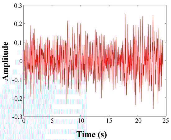 In Figure 11, IMF1 is red and the rest of the IMF is blue; IMF1 includes the full spectrum information. The IMF1 component of each signal includes high-frequency noise components above 13 kHz. Moreover, there is also a high-frequency component of the IMF1 component in the nonleaked signal. Therefore, a low-pass filter is used to eliminate the influence of the high-frequency noise components above 13 kHz in the IMF1 component. The signal is then reconstructed with effective IMF components to obtain the underwater pipeline leak acoustic radiation reconstruction signal. The waveform in time-domain is shown in Figure 12 and Figure 13 (e.g., DN20 at 0.25 MPa). The device will generate additional noise when it first starts up, which is also reflected in the early stage in Figure 12.