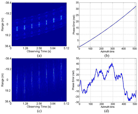 where and . Let and . Next, Equation (9) is used to calculate the phase gradient ( is the phase error of the th echo signal needed to be corrected for each range bin):