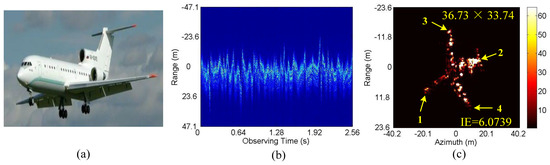 Real data of Yak-42 airplane. (a) Optical image. (b) HRRPs. (c) The ISAR image obtained by the proposed framework.