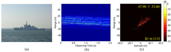 Real data of a ship. (a) Optical image. (b) HRRPs. (c) The ISAR image obtained by the proposed framework.