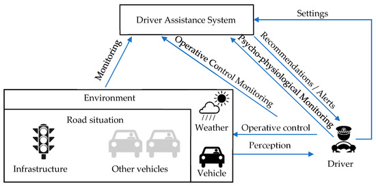 The cognitive state of the driver is one of the key causes of traffic accidents [20]. The authors of [21] present a review of “psychophysiological measures that can be utilized to assess cognitive states in real-world driving environments”. They claim that without psychophysiological measures it would not be possible to evaluate the cognitive state of the driver. The most widely used psychophysiological indices “include: electroencephalography and event-related potentials, optical imaging, heart rate and heart rate variability, blood pressure, skin conductance, electromyography, thermal imaging, and pupillometry”. Some conclusions are made on the efficiency of usage of different indices.