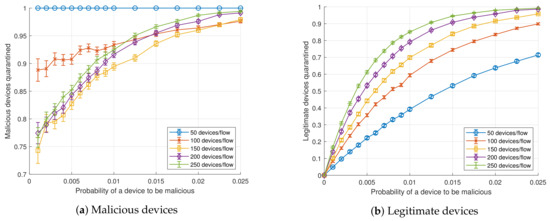 | Malicious Devices (%) | Expected Number of Malicious Flows (%) |