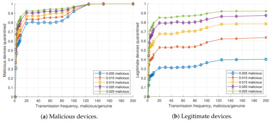- : Ratio between the transmission frequency of a malicious device and a legitimate device.
