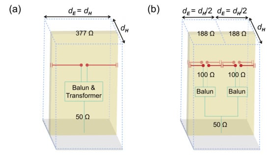 - Cavallo, D.; Neto, A.; Gerini, G. PCB slot based transformers to avoid common-mode resonances in connected arrays of dipoles. IEEE Trans. Antennas Propag. 2010, 58, 2767–2771. [Google Scholar] [CrossRef]