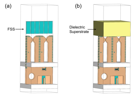 - Moulder, W.; Sertel, S.; Volakis, J. Superstrate-enhanced ultrawideband tightly coupled array with resistive FSS. IEEE Trans. Antennas Propag. 2012, 9, 4166–4172. [Google Scholar] [CrossRef]