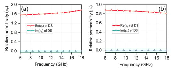 (a) Relative permittivity of the equivalent DS; (b) Relative permeability of the equivalent DS.