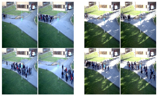 - Beijing Bus Rapid Transit (BRT) [48]: The Beijing BRT database contains 1280 images captured from surveillance cameras fixed at various Beijing bus stations. The authors of the paper fixed the data for the training and testing phases; 720 images are used for training and remaining for testing phases. To make the database complex; shadows, sunshine interference, glare, and some other factors were also included.