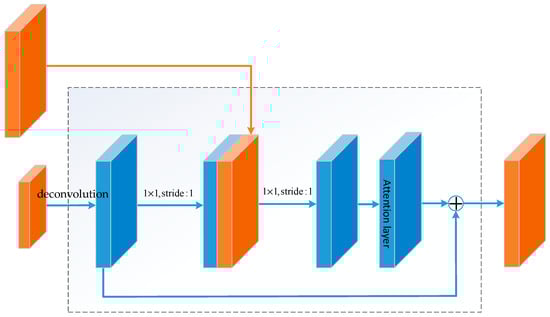 Schematic diagram of up-sampling structure in hourglass structure incorporating attention mechanism.