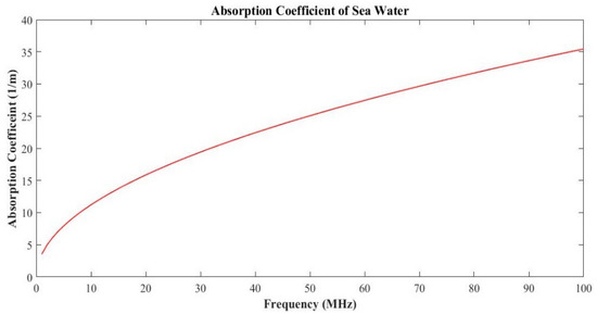 The absorption coefficient of seawater using electromagnetic wireless communication.