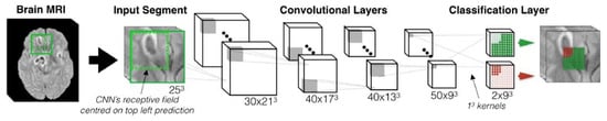 Medical images have varied characteristics depending on the target organ and the suspected diagnosis. Common modalities used for medical imaging include X-ray, computed tomography (CT), diffusion tensor imaging (DTI), positron emission tomography (PET), magnetic resonance imaging (MRI), and functional MRI (fMRI) [,,,]. In the past thirty years, these radiological image acquisition technologies have enormously improved in terms of acquisition time, image quality, resolution [,,,] and have become more affordable. Despite improvements in hardware, all radiological images require subsequent image analysis and diagnosis by trained human radiologists []. Besides the significant time and economic costs involved in training radiologists, radiologists also suffer from limitations due to their lack of experience, time and fatigue. This becomes especially significant because of an increasing number of radiological images due to the aging population and more prevalent scanning technologies that put additional stress on radiologists [,,,]. This puts a focus on automated machine learning algorithms that can play a crucial role in assisting clinicians in alleviating their onerous workloads.