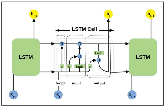 The computation of the LSTM states at a given time step (t) can be expressed as [24]: