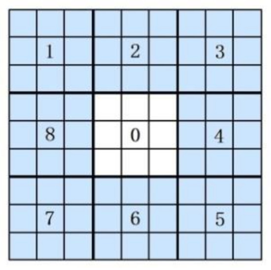 Figure 4 shows an example of eight neighborhood pixels. Suppose that is the intensity value of the center pixel and that is the intensity value of the neighborhood pixels. The binary sequence can be generated as: