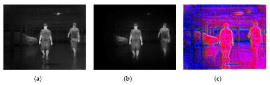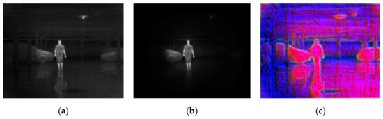 A simple example showing the model’s performance when it comes to the best conditions with (a) original infrared (IR) image, (b) background suppression result, and (c) channel expansion result.