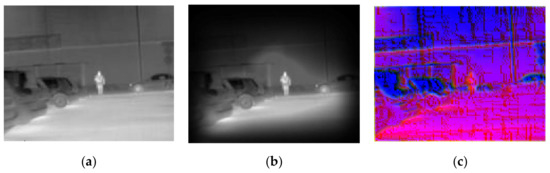 In the infrared (IR) spectrum approach, the IR cameras receive radiation emitted from the scene in the daytime and nighttime conditions [1,2], and their intensity distribution is not sensitive to the illumination of the scene or color of the object [3,4,5]. Human candidate pixels are supposed to be with higher intensity in the IR images because the temperature of the human body is usually higher than that of the background [6]. Although an increasing number of theories and methods have been put forward as solutions for visible light classification and detection problems [7,8,9,10], those for IR imagery detection have never been proposed in a systematical manner. In general, the IR spectrum can be classified into four sub-bands, such as near-IR, short-wave IR, medium-wave IR, far-infrared [11,12]. Among these bands, humans are more physically visible in the far-infrared camera than in the other cameras [12,13]. However, there are two main factors that have hindered the development of detection based on the far-infrared imagery. First, the performance of the far-infrared pedestrian detection could be influenced by low image resolution, low contrast, and the large noises of far-infrared images. Besides, the performance of the detection is also affected by the high temperature of the cluttered background caused by hot weather in the day time and radiation from other sources like the sun or the lamps [13].