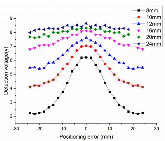 Variation of the terminal voltage caused by positioning error at different detection distances.