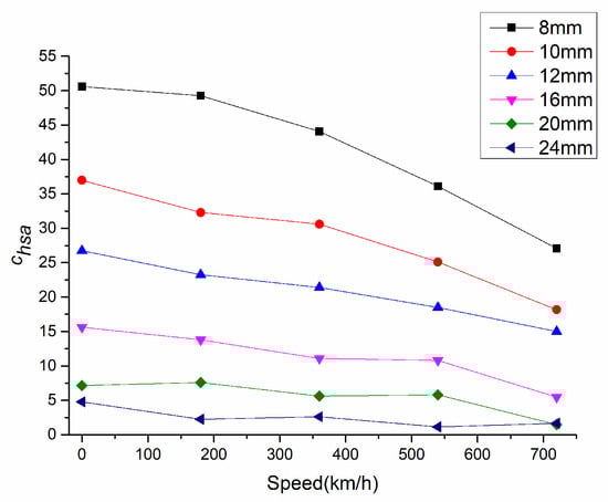 Due to the geometric delay of NINK with the change of speed, different positioning errors are caused. Figure 14 shows the relationship between the positioning error and the terminal voltage of the coil A. When the positioning error increases, the terminal voltage decreases, and correspondingly, the speed adaptability of NINK also decreases at high speed, as shown in Figure 15. Detection distance has great influence on speed adaptability. At the detection distance of 24 mm, the speed adaptability is lower than five. In this case, although the code can be read correctly, the reliability is not high. Figure 16 shows the changes of speed adaptability of 600 km/h at different detection distances. The speed adaptability at detection distance of 24 mm is close to one. Therefore, it is considered that the detection distance should not exceed 20 mm.