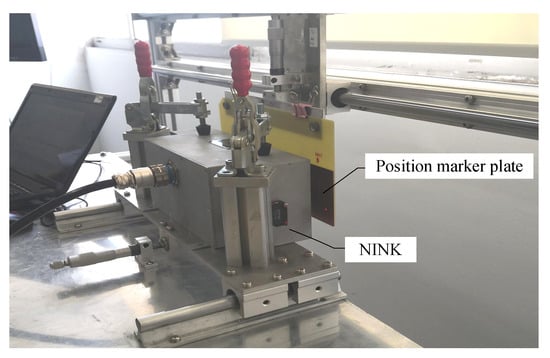 Photoelectric switch is used to locate, compared with coil positioning, optoelectronic switch has higher dynamic response characteristics, which can ensure that NINK has a lower response delay; thus, reducing the positioning deviation. The working state of NINK is shown in Figure 6, photoelectric switches L1 and L2 are used to determine whether the absolute positioning sensor reaches the intended reading position. L1 and L2 are arranged on both sides of the detection coil, and the distance between them is less than the length of the marker plate. When the sensor enters the detection range from the forward direction, L1 and L2 will be successively placed ON state. If L1 and L2 are on at the same time, it means that the sensor is facing the marker plate, indicating that NINK is located in the reading position, and then output the current reading value.