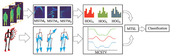 As shown in Figure 1, we extract MSCTV from skeleton sequences, and extract MSTM from depth video sequences. Next, we further extract the Histogram of Oriented Gridient (HOG) feature of MSTM. Then, we fuse MCSTV and MSTM through MTSL, and use the fusion features to complete human action recognition research.