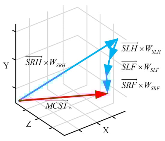 MCSTV is obtained by weighted accumulation of motion vector of each limb is shown in Figure 4. As can be seen from the figure, after weighted accumulation, the MCSTV of this action is dominated by . Compared with the direct accumulation of motion vector in Figure 2, this method more directly reflects the major motion joints of the action.