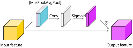 where [;] represents the concatenation operation of two feature maps, Avgpool () and MaxPool () represent the corresponding pooling operation, represents the convolutional operation and sigmoid () is the activation function.