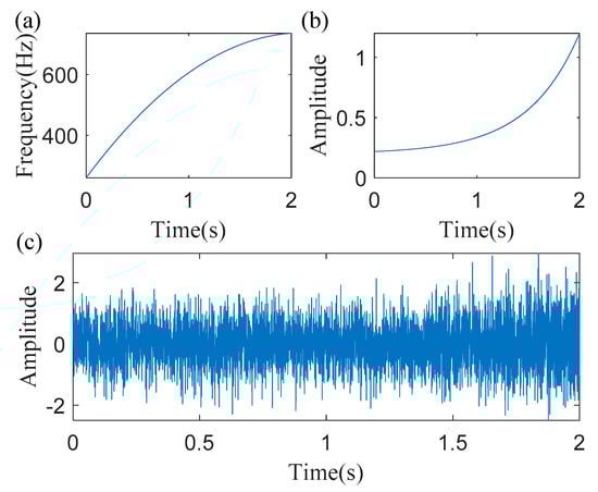 Characteristics of the simulated signal: (a) instantaneous frequencies (IF); (b) instantaneous amplitude (IA); and (c) simulated signal with a noise.