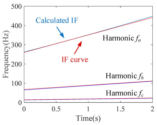In this paper, the polynomial function model is used to fit discrete IFs. Hence, the first IF curve function is . The first demodulation and modulation operators can be calculated as