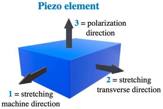 The piezoelectric output of the PVDF film depends on the direction of the applied external stress []. The d33 coefficient is used when we consider stress exerted only in direction 3, or the element has thickness: