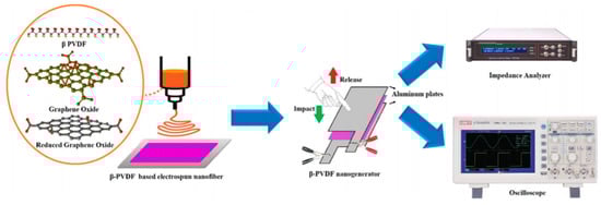 - Zeyrek Ongun, M.; Oguzlar, S.; Doluel, E.C.; Kartal, U.; Yurddaskal, M. Enhancement of piezoelectric energy-harvesting capacity of electrospun β-PVDF nanogenerators by adding GO and rGO. J. Mater. Sci. Mater. Electron. 2020, 31, 1960–1968. [Google Scholar] [CrossRef]