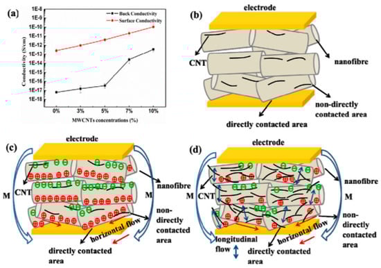 - Yu, H.; Huang, T.; Lu, M.; Mao, M.; Zhang, Q.; Wang, H. Enhanced power output of an electrospun PVDF/MWCNTs-based nanogenerator by tuning its conductivity. Nanotechnology 2013, 24. [Google Scholar] [CrossRef] [PubMed]