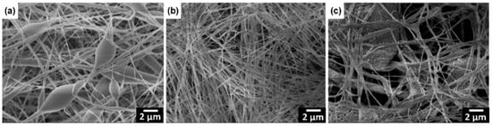 Similar results were reported by Zaarour et al. []. Their recent paper looks in depth at the effect of PVDF solution concentrations on the surface structure. Authors have shown that concentration is one of the most significant factors for forming grooved nanofibers and porous structures (Table 1).