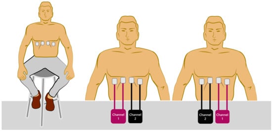 - Two electrodes were symmetrically placed in the left ventral chest and two in the right ventral chest (Figure 7).