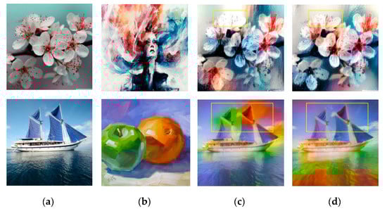 The style transfer results of Liao et al. and EC-RNDT model: (a) content image; (b) style image; (c) Liao et al.; (d) EC-RNDT.