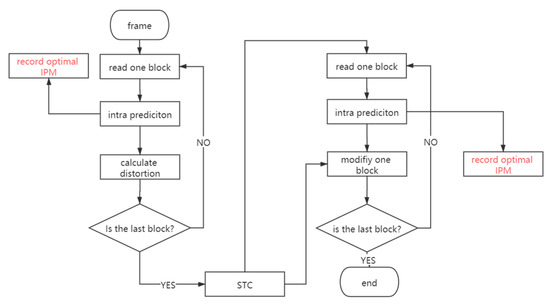 As a typical adaptive video steganography based on the intra-prediction mode, this paper selects Nie et al.’s algorithm to verify the above viewpoint. As shown in Figure 1, the procedure of embedding is not changed while the optimal IPMs of every cover are recorded before the calculation of the embedding distortion definition. After executing the STC, the optimal IPMs of the same blocks are also recorded before the modification is done.