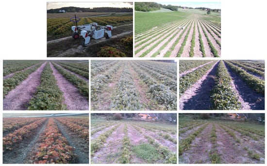 - English, A.; Ross, P.; Ball, D.; Upcroft, B.; Corke, P. Learning crop models for vision-based guidance of agricultural robots. In Proceedings of the 2015 IEEE/RSJ International Conference on Intelligent Robots and Systems (IROS), Hamburg, Germany, 28 September–2 October 2015; pp. 1158–1163. [Google Scholar]