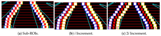 - As in Figure 7b, both the sub-ROI will move in the opposite direction with the constant increment i, i.e., the center or of the left and right sub-ROI will shift i number of pixels in their search direction. The sub-ROI will give the flexibility to search along the strip in a sequence until it found the edge of the label or until it reaches the boundaries of the nth substrip. A search has also stopped if the current sub-ROI overlap with the already fitted sub-ROI from the neighboring areas.