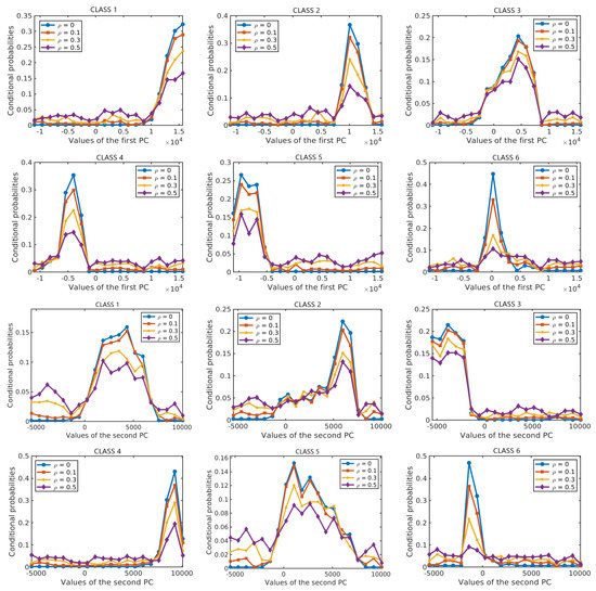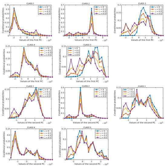 Section 4, provide new insights into the effects of label noise on supervised classification of hyperspectral remote sensing images. Empirical conditional probability distributions of HSI features conditioned on class labels, as well as prior distributions of class labels, exhibited graceful flattening with increasing amounts of label noise. Their evolution clarifies why Bayesian classifiers such as the relatively simple NBCs are much more robust to label noise than some other, more complex methods. These results are consistent with previous findings from [