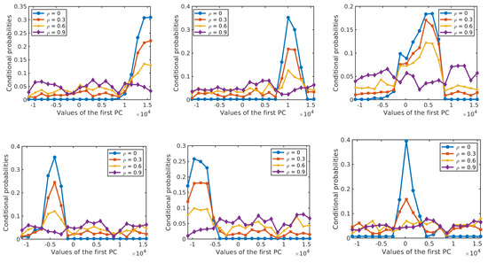 . The reason for this sharp decrease can be attributed to the flattening of the conditional densities for larger