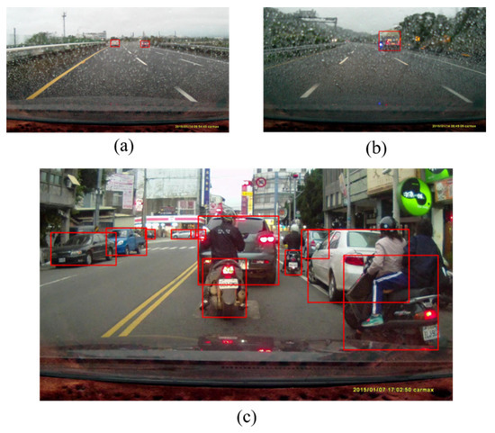 Illustration of the complexity of real driving environments. In real driving environments, objects often appear in different kinds of scale and distance as in (a–c).