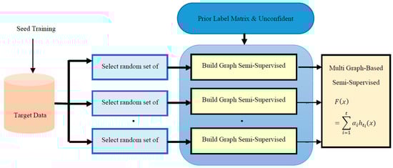 The final prediction is performed using an ensemble approach by integrating the outcomes from a supervised and a semi-supervised model. The supervised model is trained using a selected sample from the translated source data while the semi-supervised graph-based model learned the patterns within the target data. The main objective is to strengthen the classification performance and reduced complexity of the graph-based model.