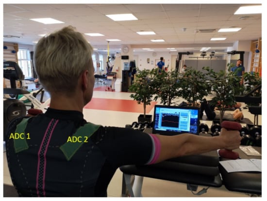 - Semjonova, G.; Vetra, J.; Oks, A.; Katashev, A. Development of a New Method to Monitor Shoulder Girdle Motion for Ballerina with Shoulder Impingement Syndrome Based on DAid Smart Shirt Application. In Proceedings of the World Congress on Medical Physics and Biomedical Engineering 2018, Prague, Czech Republic, 3–8 June 2018. [Google Scholar] [CrossRef]