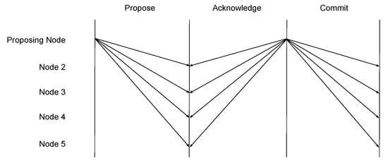 - Yin, M.; Malkhi, D.; Reiter, M.K.; Gueta, G.G.; Abraham, I. HotStuff: BFT Consensus in the Lens of Blockchain. arXiv 2018, arXiv:1803.05069. Available online: http://arxiv.org/abs/1803.05069 (accessed on 4 April 2020).