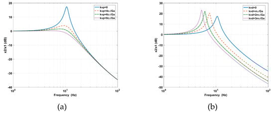 Effect of (a) the proportion kvp and (b) the derivative kvd of the absolute velocity feedback (AVF) on vibration transmissibility.