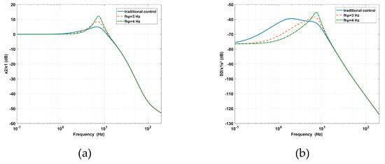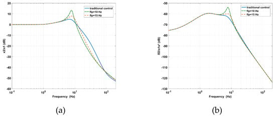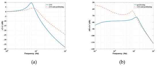 From Equation (9) to Equation (12), one can obtain ∂Tiso/∂Hd = −∂Tpos/∂Hd and ∂Tpos/∂Hv = −∂Tiso/∂Hv. It means that the controllers have opposite effects on the AVI and positioning. The basic idea of the PFC is to shape the Hd(s) and Hv(s) with suitable ωd(s) and ωv(s), thus weakening the contradiction between the AVI and positioning in the frequency range.
