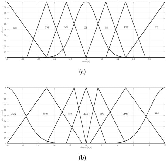 Fuzzy sets were first studied by L. Zadeh. Fuzzy sets are labeled by linguistic terms. Linguistic values are transformed into numerical values to cover the overall interval of the linguistic variable according to the design []. Examples of linguistic variables that are used in the design of fuzzy controllers are the error, the rate of change in error, and the integral of the error []. The way of transforming a qualitative value into a quantitative value is necessary for real-world applications.