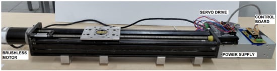 Linear motor motion controllers are presented in many industrial applications, including sliding door closers, assambly, conveyor systems, electronic manufacturing, material handling, industrial test, and robotic applications []. Motion control is a sub-field of automation that involves controlling mechanical movements of load and it is applied directly to the actuator to manage physical variables, such as torque, acceleration, velocity and position of an axis or axes, depending of the degree of freedom (DoF) of the system []. Motion control is applied to avoid the stress that is produced by a fast movement and to reduce the vibrations that are caused by the high rate of change in acceleration; also, trajectories are created to reach a desired position that the actuators must achieve [,]. Most commercial motion controllers that are available for industrial processes are based on classic controllers, such as Proportional-Integral-Derivative (PID) controller, and they are of closed architecture [].