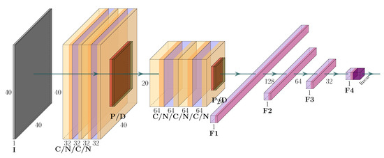 As shown in Figure 5, the CNN architecture used in this research was inspired from VGG-16 architecture [64]. However, in contrast to VGG-16, the VGG-like network used here had only five convolutional layers, while all the kernel filter sizes were 3 × 3 (C). Following each convolutional layer is the batch normalization layer (N). Max pooling layers (P) were applied between these C blocks. In addition, after the second and fifth convolution layers, 0.25 dropout (D) was added. This set of convolutional layers was followed by three fully connected layers, with 128, 64, and 32 incoming connections using ReLU activation. Finally, to solve the regression problem, a fully connected layer with one incoming connection and a linear activation output was added.