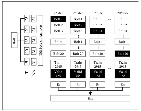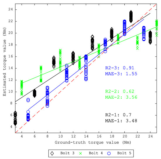 In this study, 25 bolted joints were scanned. The first 20 bolts were torqued in equal 5 Nm increments from 5 Nm to 25 Nm, and were used to perform experiments for training. The last five bolts with continuous torque values from 3 to 25 Nm were chosen for testing the model. One of the main reasons these values were chosen was that the torque limit was based on the bolted joint diameter, and it was challenging to control the torque below 3 Nm.