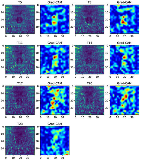 However, given the success of a DL in different applications, the interpretability of black-box CNNs remains a topic of considerable research. Sevaraju et al. [65] first introduced a technique, called gradient-weight class activation mapping (Grad-CAM) in 2017. This technique makes any model based on CNN more clear by offering visual explanations. Grad-CAM uses gradient knowledge that flows into the CNN’s last convolutional layer to allocate an importance to each neuron for a particular interest decision. After obtaining a trained model, the Grad-CAM technique is applied to determine the region where CNN followed the decision-making process. Therefore, in this study, some filtering steps were used to improve the accuracy and demonstrate the correctness of this Grad-CAM assumption.
