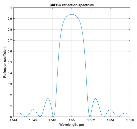 According to expression (4), it is possible to construct the reflection spectrum of the ChFBG, shown in Figure 8.