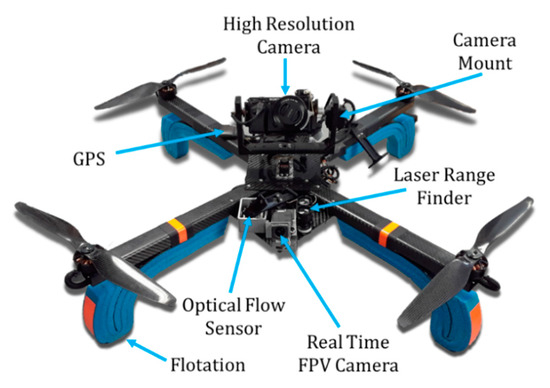 24]. To round out the sensor/control sweet, an optical flow sensor, laser range finder, PixHawk autopilot (3D Robotics, Berkeley, CA, USA), GPS and video transceivers were incorporated, as can be seen in